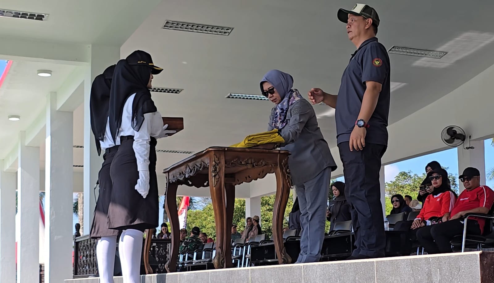 Badan Kesatuan Bangsa dan Politik (Kesbangpol) Kukar menggelar gladi bersih di halaman Kantor Bupati Kukar pada Jumat (15/8/2025). Acara ini diikuti seluruh petugas dan 41 personel Pasukan Pengibar Bendera Pusaka (Paskibraka).